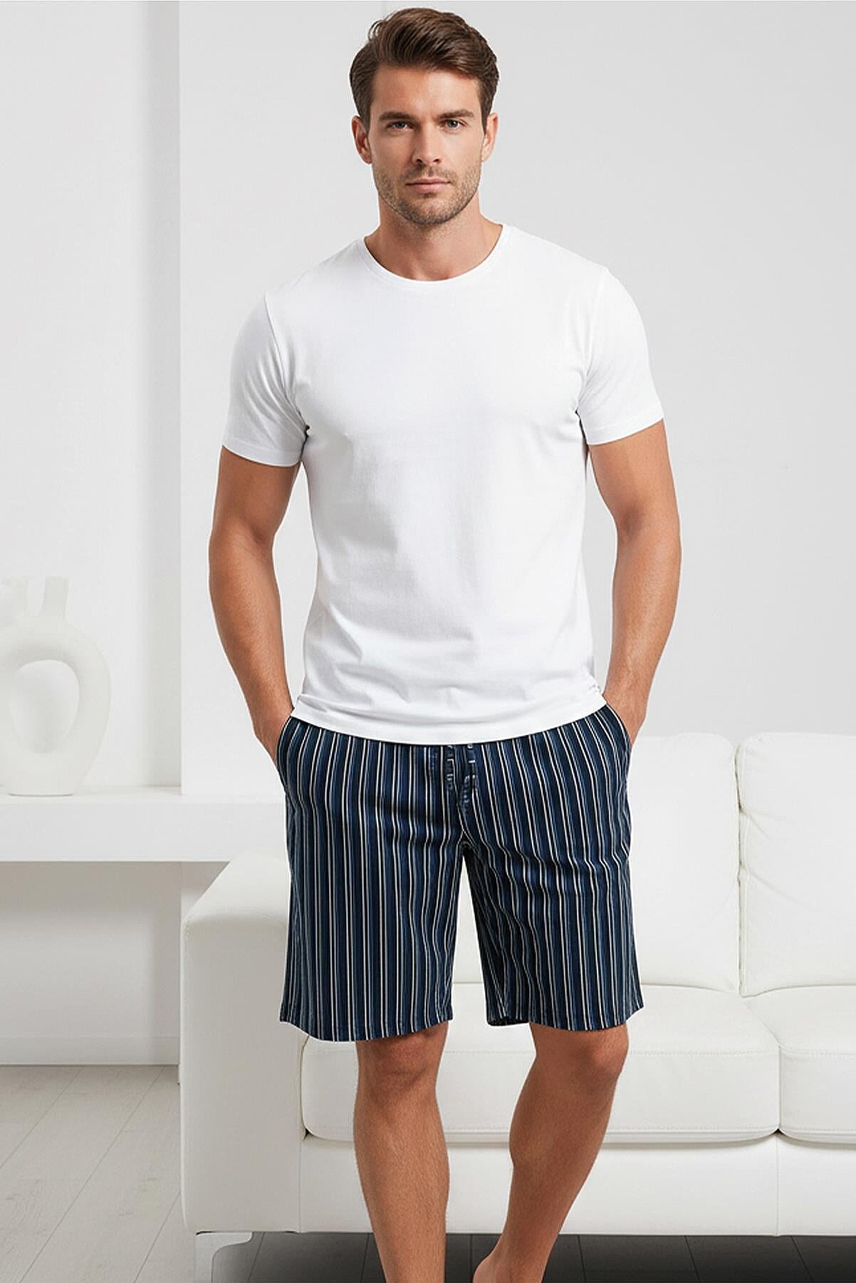 15333 Jiber Erkek Patlı Kısa Kol Pijama Takım Lacivert