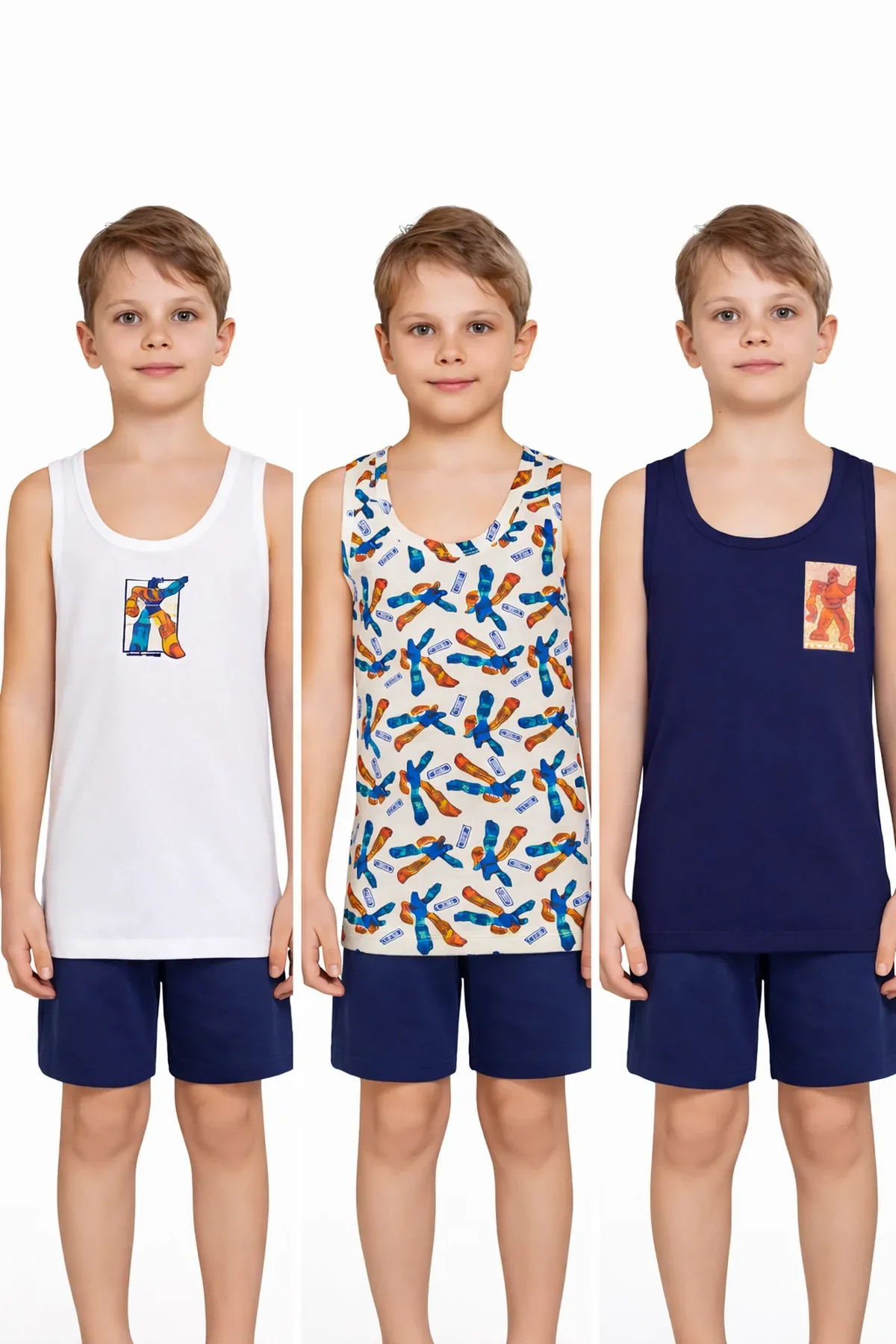 3109 Gümüş Erkek Çocuk Baskılı Atlet 6'lı Paket