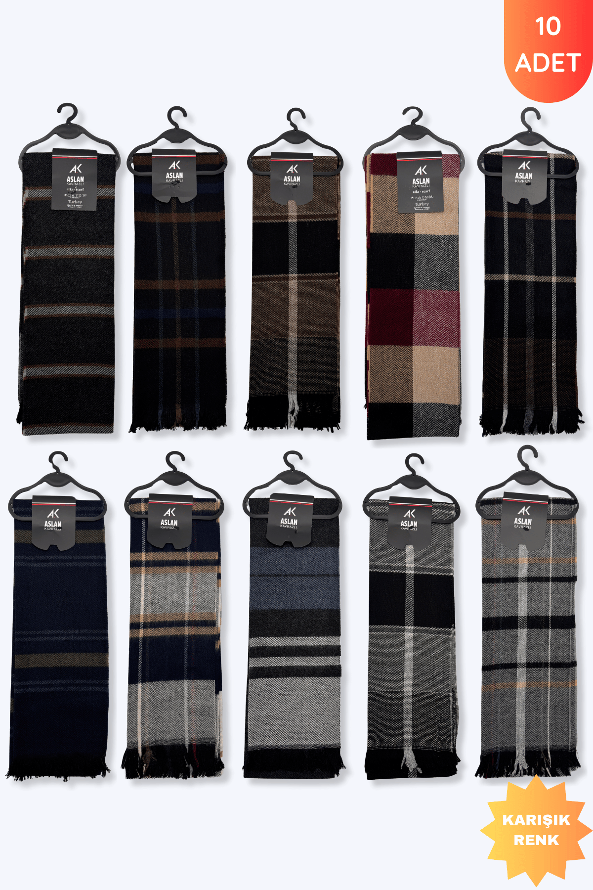 Aslan Erkek Yün Atkı 10'lu Asorti