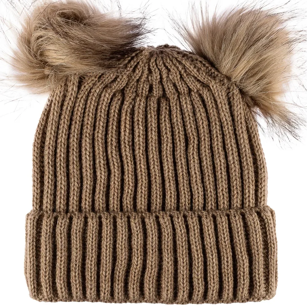 K24420-02-015 Bayan SYT Çift Ponponlu Bere 6'lı Vizon