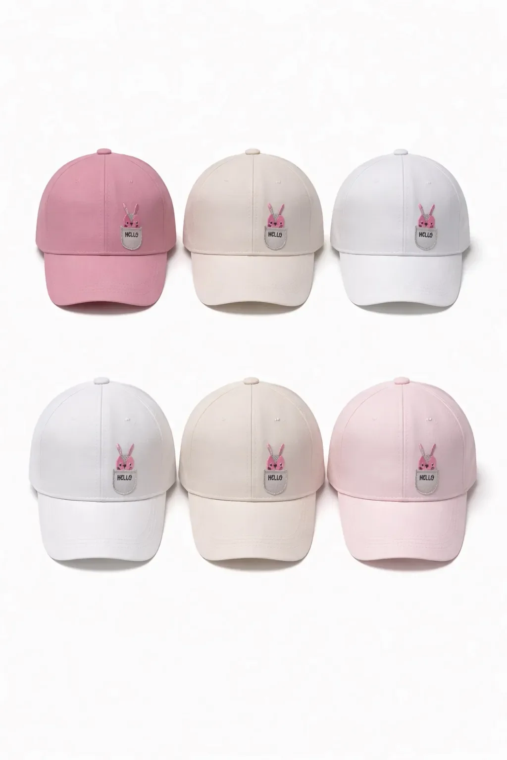 P-Y26140-01 Kitti 1-4 Tavşan Nakışlı Kız Şapka 6'lı